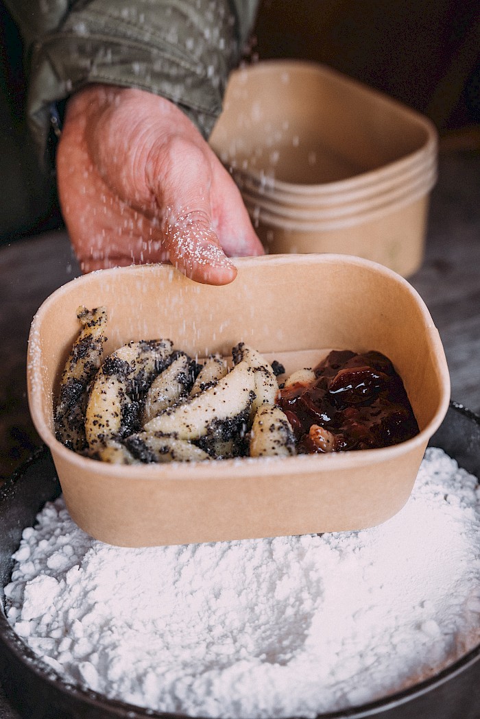 Mit Mohn-Zucker bestreuen. Nach Lust mit Zwetschkenröster oder Apfelkompott servieren. Voilà – Familienglück pur!