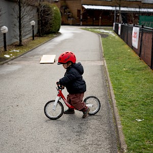 Der erste Schritt zum Radfahren ist das Gleichgewicht. Viele Kinder beginnen mit einem Laufrad oder einem Fahrrad ohne Pedale.