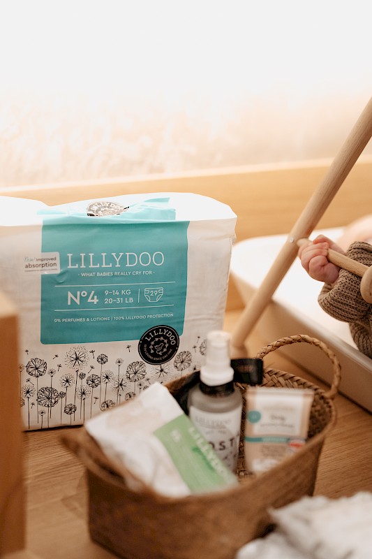 Der Extra-Service: Windeln und Feuchttücher blockieren oft den halben Kofferraum. Spart euch den Platz! Beides könnt ihr als optionales Add-on von LILLYDOO direkt über uns beziehen.