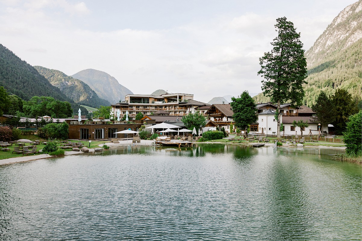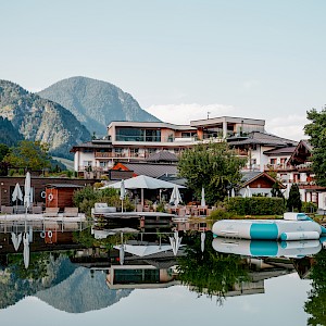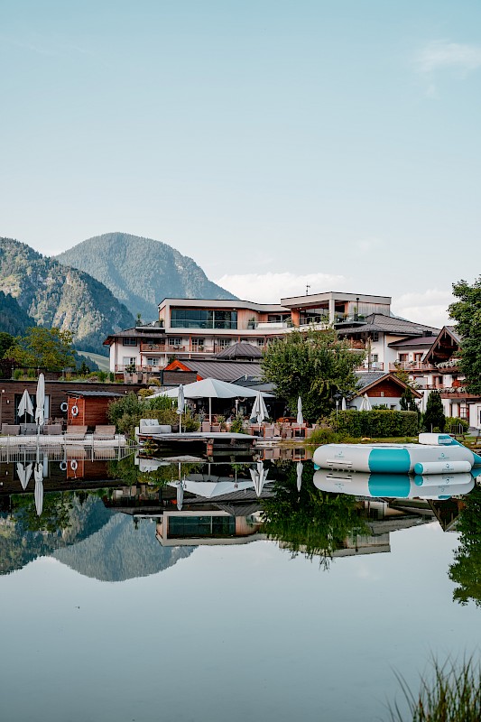 Our guests appreciate the special home-away-from-home feeling: A manageable resort, short distances, and thoughtful details – from parents, for parents. We offer space for all generations, from the Baby Club (starting at 2 weeks) to Kids & Teens, and Adults-Only areas for your relaxation and Wellness. Our focus is on Nature & Design: Lake access, mountain air, lots of wood & Untersberg marble – calm, clear, with no show-off. And for a truly all-inclusive stay, we provide Joolz strollers in the room, the Holle Baby Bar, and all baby equipment (less luggage, more enjoyment).